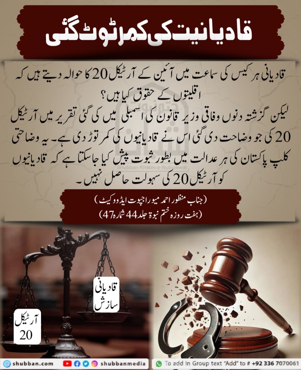 قادیانیت آئین و قانون کی نظر میں