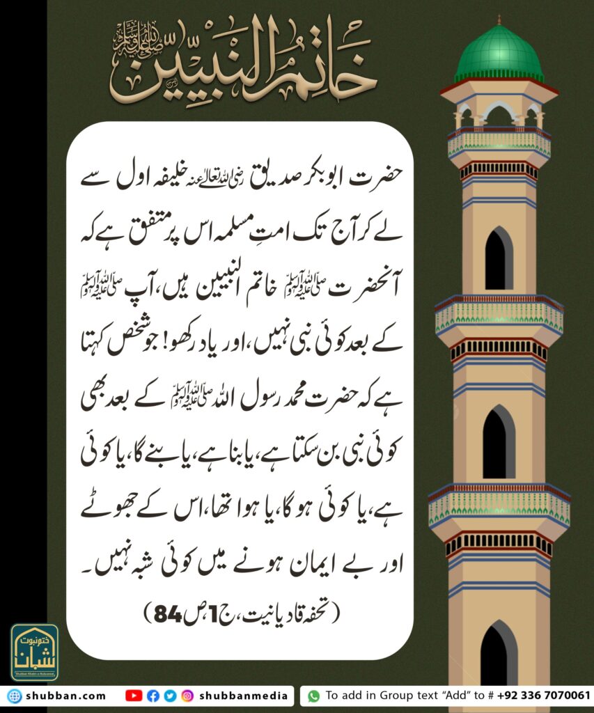 عقیدہ ختم نبوت احادیث مبارکہ کی روشنی میں