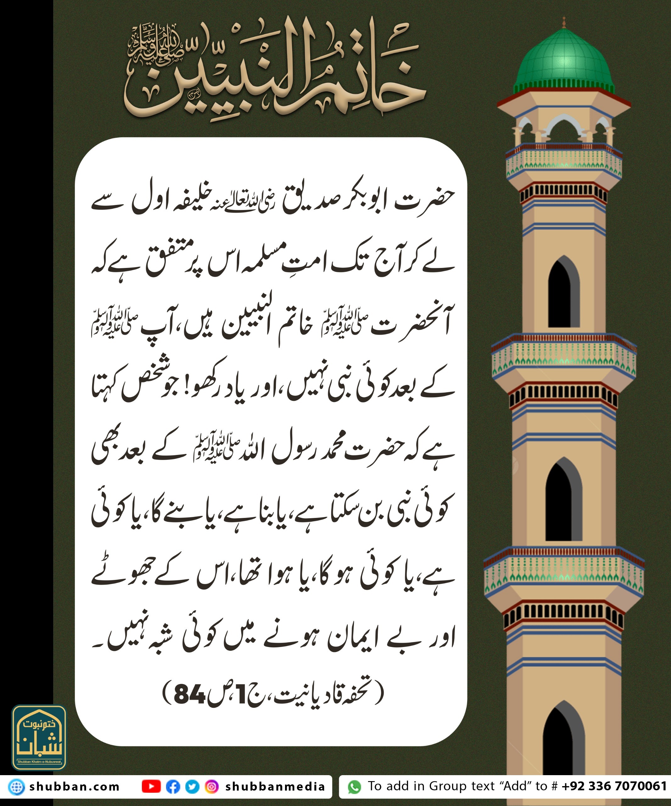 عقیدہ ختم نبوت کی اہمیت و فضیلت